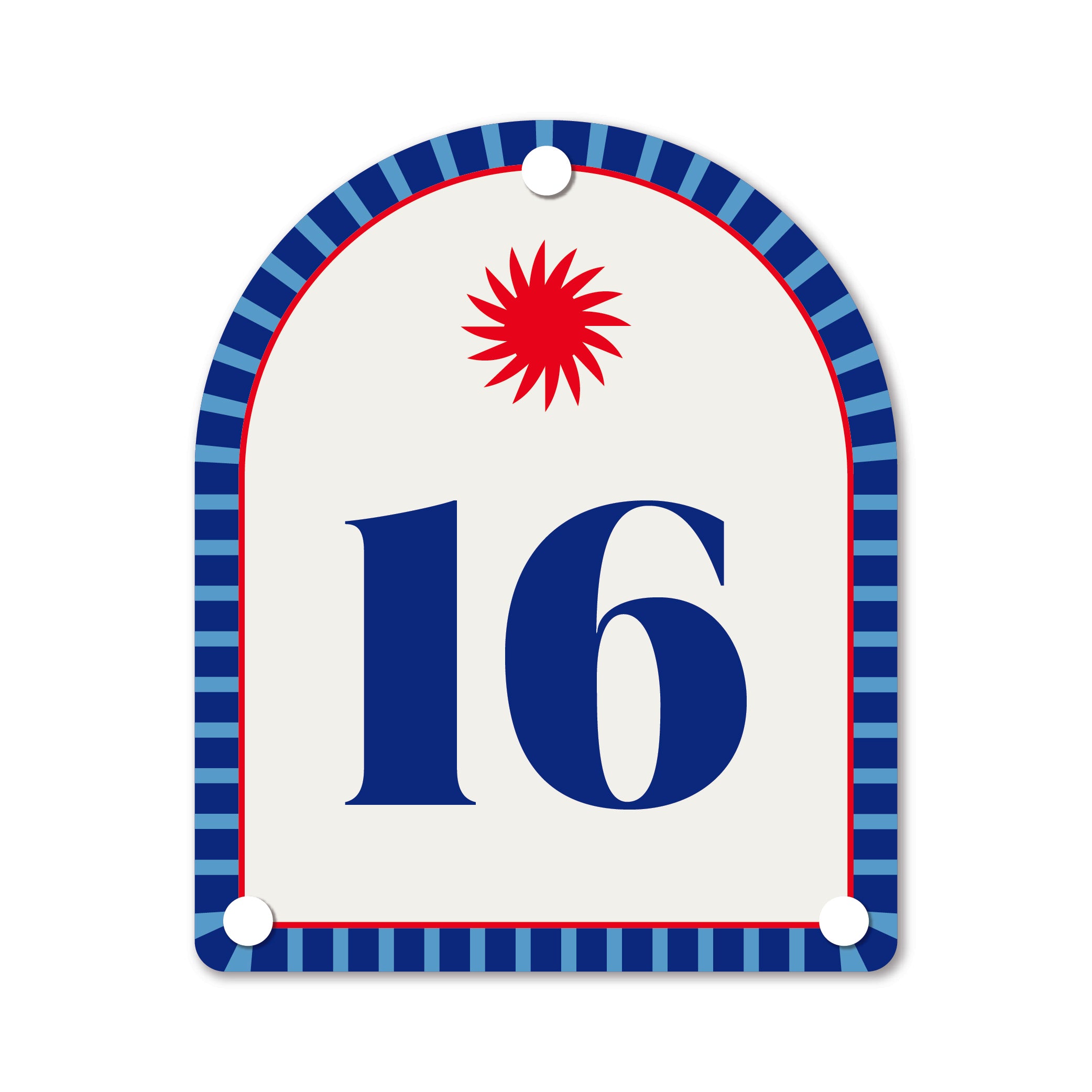 Bold stripes and contrasting pinstripes give this house number its playful charm — a nod to summers gone by, when days felt endless, carefree, and impeccably styled.