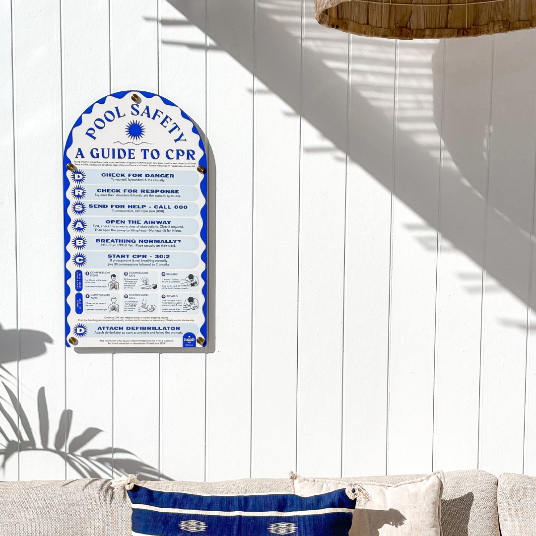 Santorini Blue | Mediterranean Pool CPR Sign | Factory Second